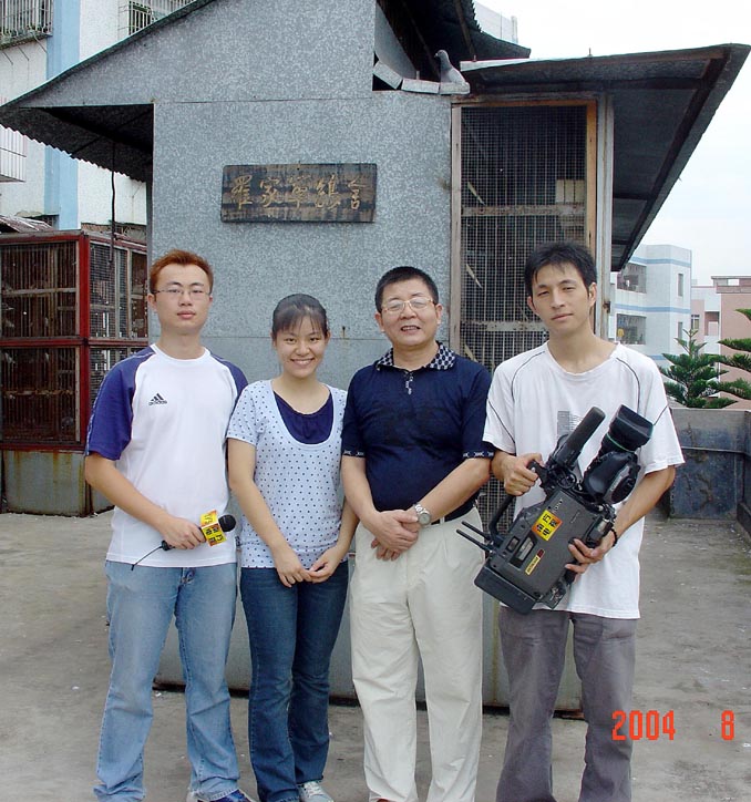 近年来,“岭南雄师罗家军”在全国赛鸽运动中取得的突出成就,引起了当地媒体的普遍兴趣,继《信息时报》以“鸽坛大哥大,岭南罗家军”为题,整版介绍罗家军品系鸽后,南方日报、羊城晚报、广州日报等著名媒体都纷纷大篇幅介绍罗斌先生培养“罗家军鸽系”事迹。最近,南方电视台,经多次与罗政委联系,捷足先登。图为南方电视台《城市特搜》节目组的年轻记者、编导杨曦(左2)、张忻珏(左1)、莫彬(右1)等在“罗家军鸽舍”拍完节目后,高兴地与罗斌先生合影留念。(广广)