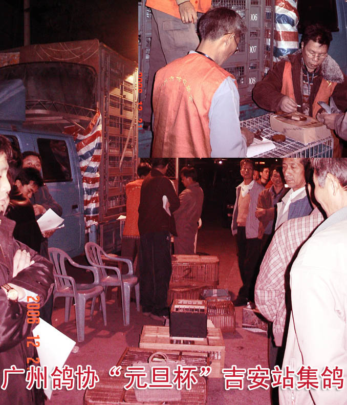 在全国赛鸽运动进入"总结表彰"的时候,南国广州却赛事激烈。这是广州鸽友的福气,就象“四季如春”的自然气候一样,在广州一年四季都可以比赛,不过,其损失也是很大的,这就注定要比北方鸽友投入更大一些。老天爷也是公平的,谁要广州的钱多些呢?!过去有句话,叫做“不到北京不知道官小,不到广州不知道钱少......”其实现在改革开放的发展,内地有些城市的消费并不比广州便宜。图为2005年12月21日晚上,广州市信鸽协会正在进行传统的“元旦杯”信鸽比赛集鸽,这次集鸽共854羽。这项"元旦杯"赛事在广州已经有近20年的历史了,去的鸽子虽然不多,但大多是秋季“驰骋沙场,屡立战功”的战将。广州“元旦杯”一般分两场,12月中下旬进行第一场,空距在400多公里,第二场一般才放在真正的“元旦”黄金周,空距在600公里左右。每年的“元旦杯”比赛,鸽子归巢远不如入秋比赛,分速也是一般,主要原因是广州气候温暖,但江西天气却很低,经常还碰到霜冻与冰雪。不过,难度增加,往往带来刺激,有刺激就有挑战......广州“元旦杯”搞完,往往还有来个“贺岁杯”的习惯,在春节前再玩一把!广州一地这样的赛事,这样的气候,这样的习惯...造就了“广鸽”与众不同的特性,罗家军潜心多年,就是在定向培养“广鸽”这种适应性强,全天候发挥的快速、耐翔、连续作战的特性。(广广摄影报道)