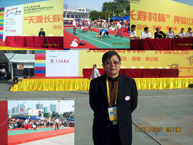 广州市信鸽协会会秘书长、罗家军鸽系创作人罗政委,出席并担任中华人民共和国第八届少数民族传统体育运动会竞委会副主任,图为罗斌先生在竞赛现场。(张辉摄影报道)