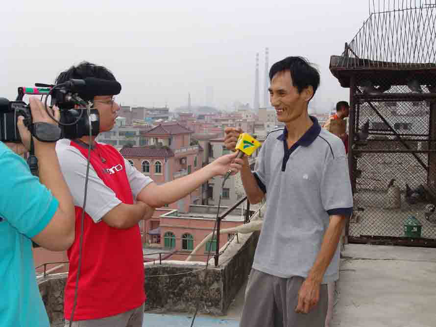 广州养鸽名家刘穗生(毛毛),因病于8日凌晨去世,现定于2009年2月11日下午3点在银河公墓31号厅举行告别会。 刘穗生先生生前是罗政委的好友,一起参加赛鸽运动、一起交流赛鸽心得、钻研赛鸽竞技、培育优良品种。刘穗生同志在广州鸽坛驰骋20余年,取得数不清优异成绩,在全市、全省有比较高的知名度,为广州赛鸽事业做出了贡献!愿刘穗生先生安息吧!图中为刘穗生2006年获得广州市第一届信鸽锦标赛500公里冠军后,广东电视台登门采访,并制作成专题片《蓝天擂台在羊城》在黄金时段播出。。(广广)